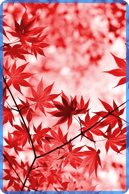 "가을 햇살이 비치는 날, 단풍 정원 위를 지나가면 빨강, 주황, 노랑이 어우러지는 풍경은 그 자체로 한 폭의 그림 같다."